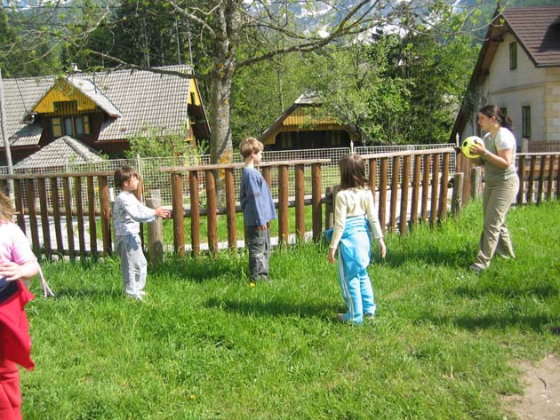 Popoldne smo odšli telovadit, se razgibavat, igrat in zabavat na travnik ob igrišču.